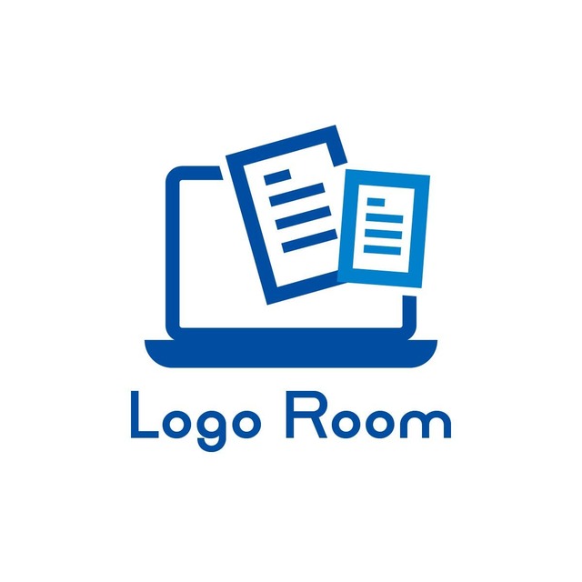 No697 パソコンと書類のロゴ【青、PC、書類、資料、シンプル、フラット、アイコン、アプリ、ソフトウェア、自動化、IT系、会計、仕分け】