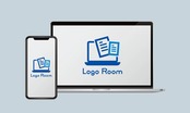 No697 パソコンと書類のロゴ【青、PC、書類、資料、シンプル、フラット、アイコン、アプリ、ソフトウェア、自動化、IT系、会計、仕分け】 | 格安ロゴ販売・著作権譲渡込み|店舗・会社のロゴデザイン LogoRoom