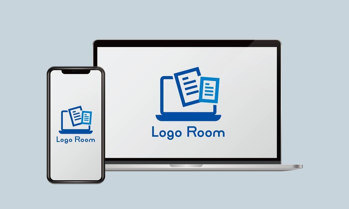 パソコンと書類を組み合わせたシンプルでフラットなロゴデザインです。