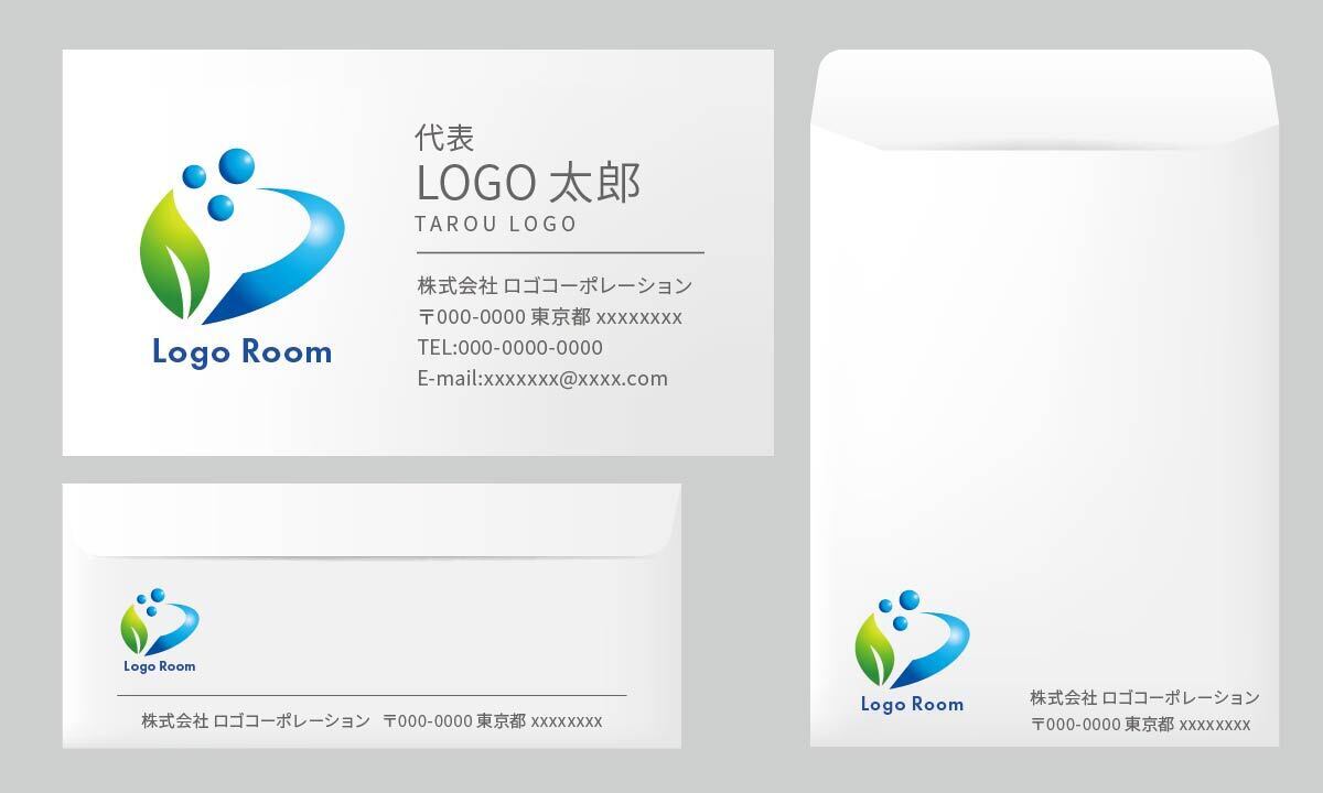 青と緑のグラデーションで表現したナチュラルで清潔感のある印象が、安心感や信頼感を演出します。クリニックや接骨院、医療、エコ関連、環境・エネルギー分野、士業やショップなど幅広い業種にご活用いただけます。
