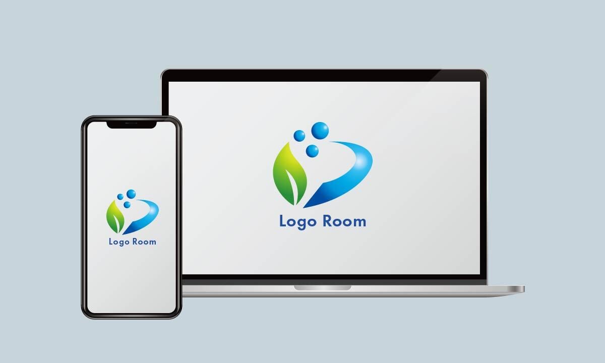 葉っぱと水の流れをモチーフにした、自然とクリーンさを表現したロゴデザインです。