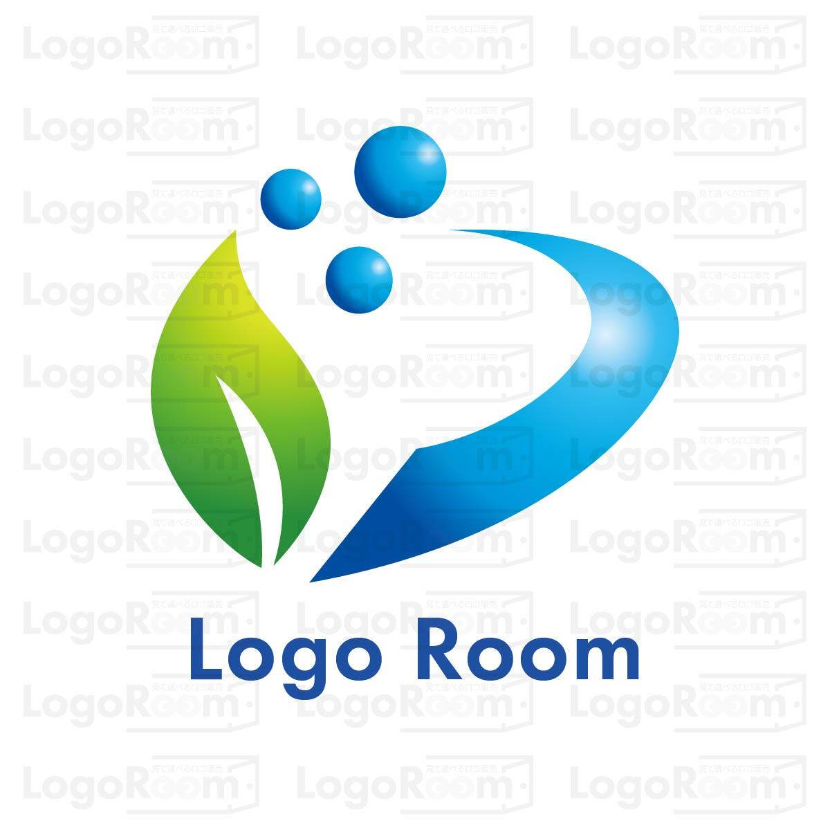 No740 葉っぱと水や流れのロゴ【青、緑、グラデーション、葉っぱ、水、流れ、自然、クリーン、ナチュラル、クリニック、接骨院、エコ、ショップ、ケア、医療、士業、エネルギー、環境】