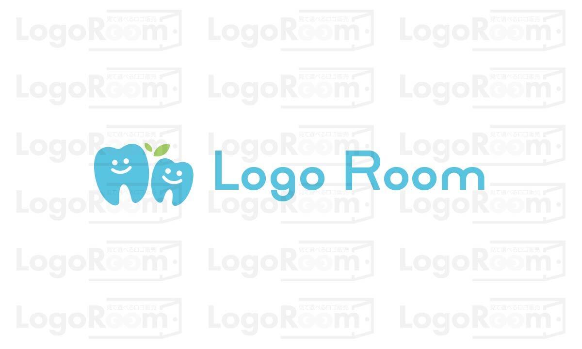 No753 親子の親しみやすい歯のロゴ【青、歯、親子、親しみ、可愛い、明るい、歯医者、デンタル、口腔、クリニック、商品、矯正、虫歯】