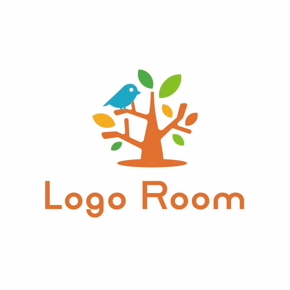 No366 木と青い鳥のロゴ【木、鳥、明るい、親しみ、可愛い、ポップ、クリニック、歯医者、保育、教育、ショップ、販売、商品】 | 格安ロゴ販売・著作権譲渡込み|店舗・会社のロゴデザイン LogoRoom